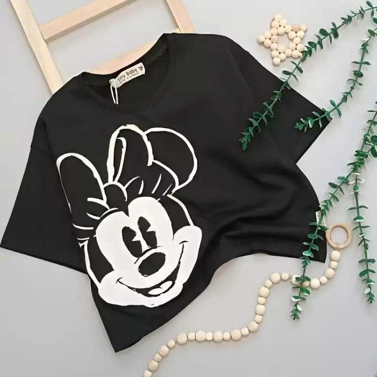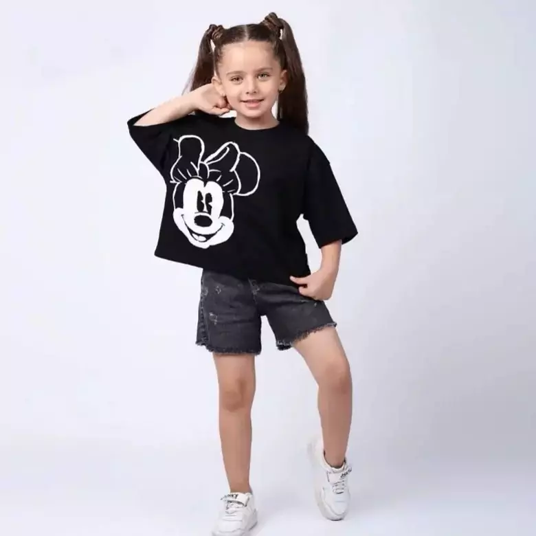 تیشرت تک مشکی دخترانه میکی موس جنس دورس پنبه درجه 1