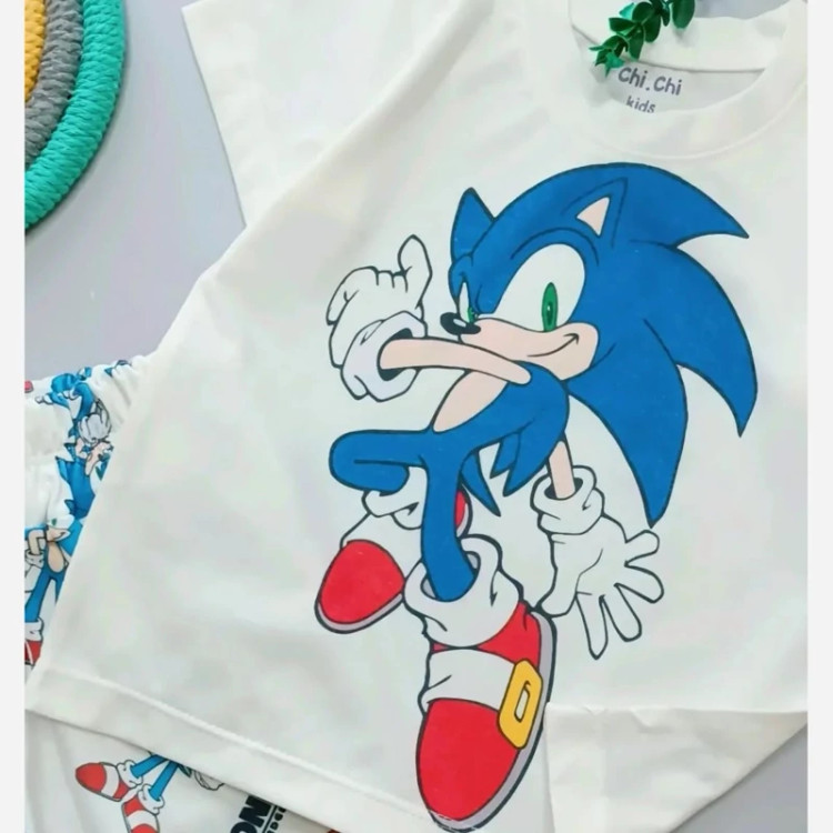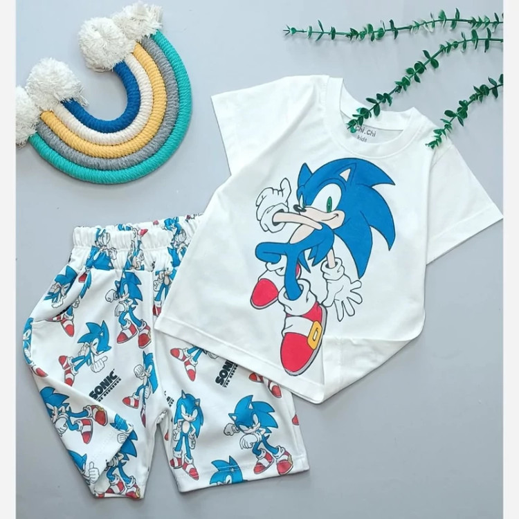 ست راحتی تیشرت شلوارک پسرانه سونیک جنس نخ پنبه درجه 1