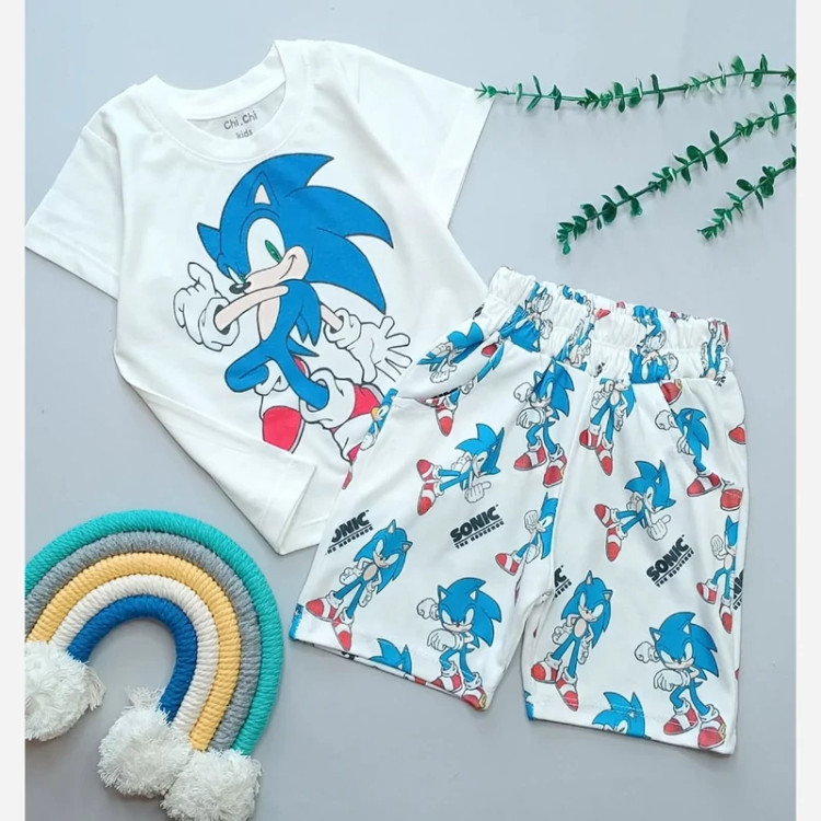 ست راحتي نخ پنبه💫 ✅تيشرت يكرو 🪡 ✅شلوارك دورو ، كش كمر پهن ، جيب دار و دوخت نماي جلو 🧵 ✨طرح سونیک جدید 💜✨ در 5 سايز مناسب دختر و پسر بدون آبرفت،پرزدهي و رنگ دهي پك 5 عددي سايز 1-5👈(1/5 تا 7 سال)