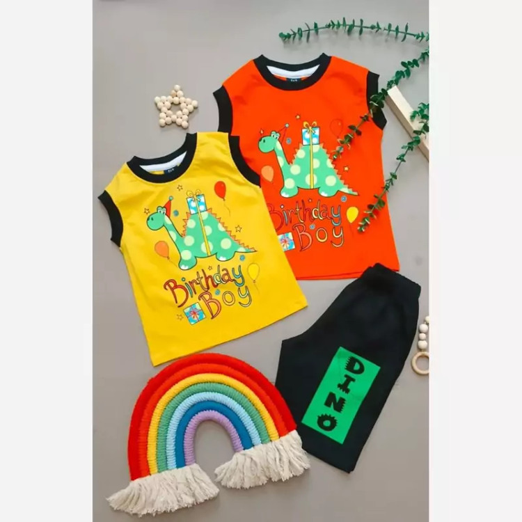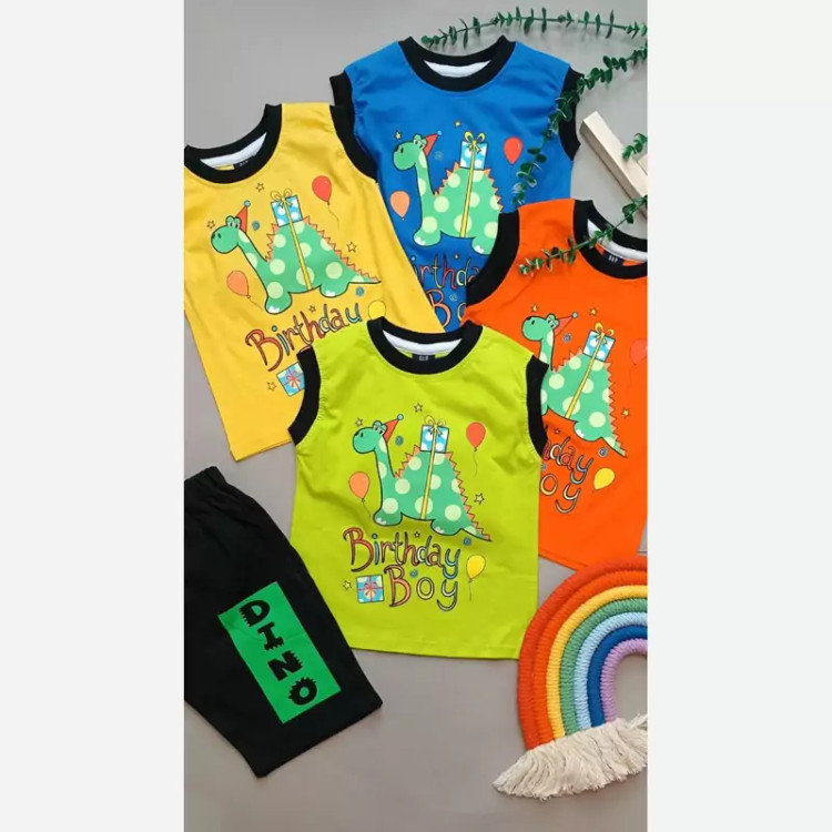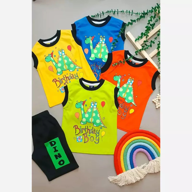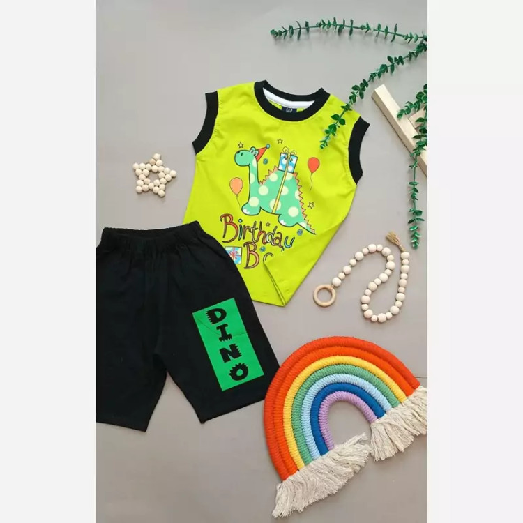 ست رکابی و شلوارک پسرانه طرح دایناسور اسپرت جنس نخ پنبه درجه 1