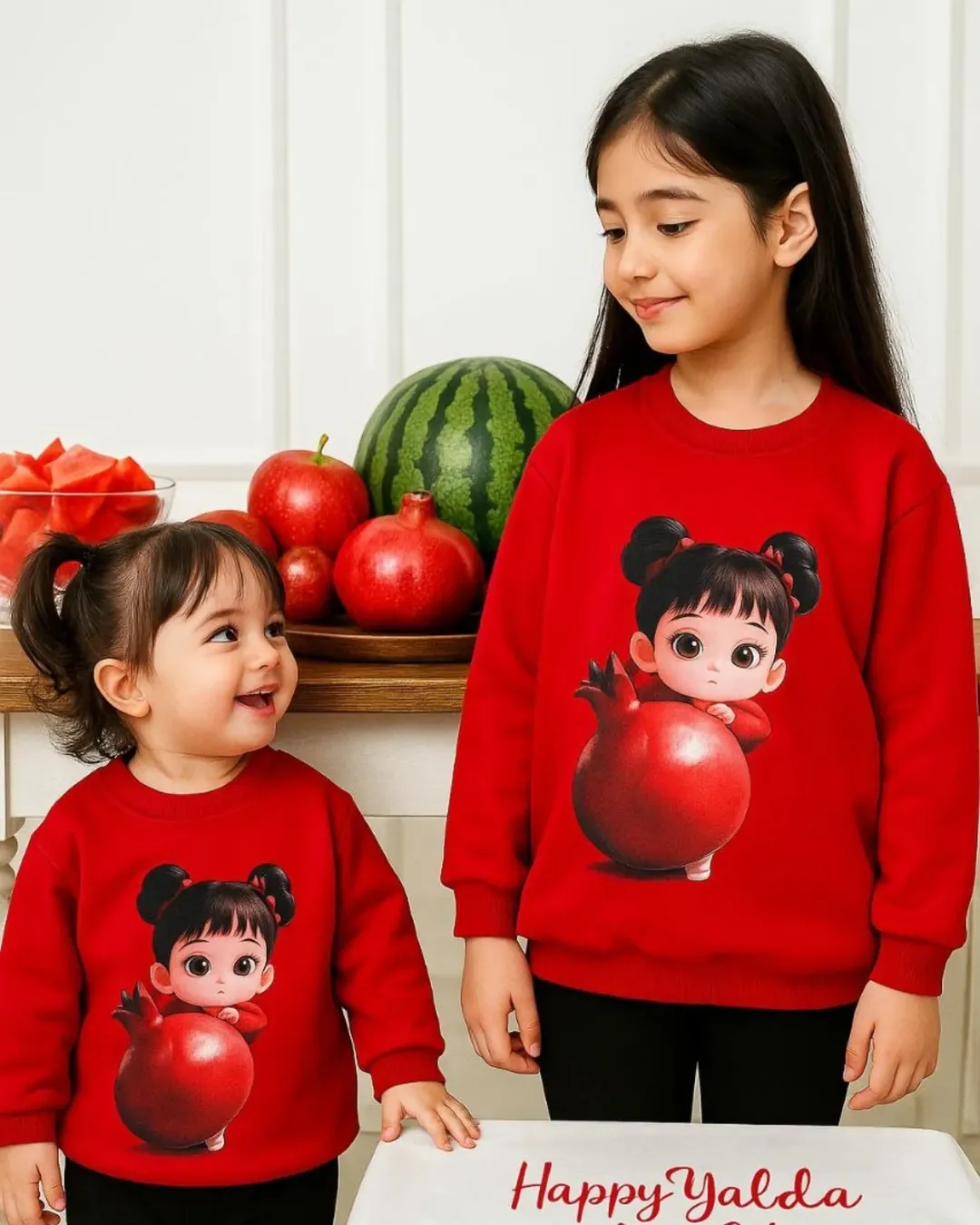 🧥🎉 جنس دورس فوقالعاده، طرحهای کودکانهی اختصاصی، رنگ قرمز یلدایی و اندازههای متنوع سایز 35 : قد لباس 35 پهنا 33 قد آستین از کنار یقه: 32