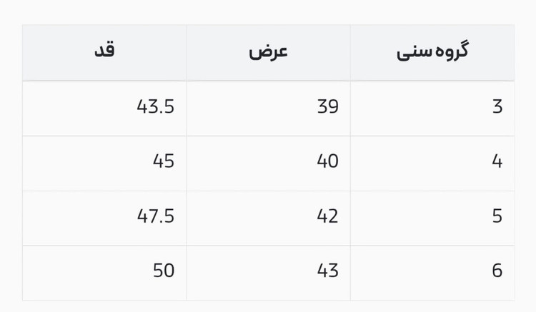سایز ۳ تا ۶ سال، اندازه ها داخل عکس های فروش