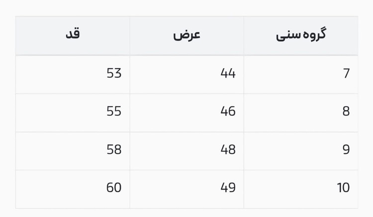 سایز ۷ تا ۱۰ سال، اندازه ها داخل عکس های فروش