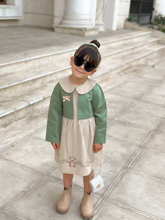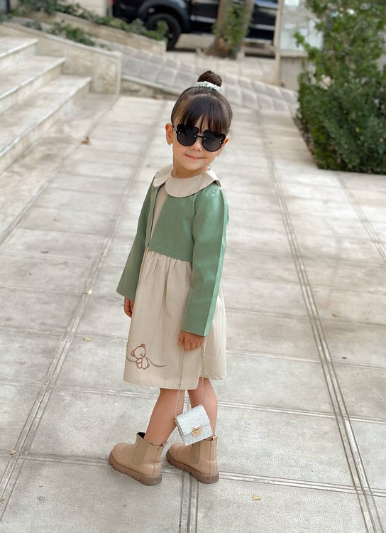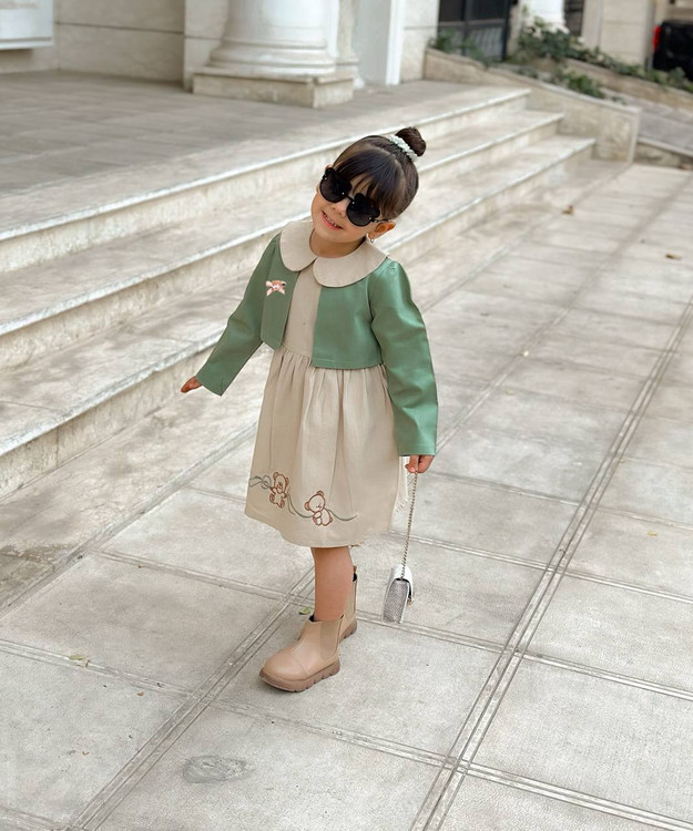 سایز ۴ سال : قد سارافون ۵۹ پهنا ۳۰ قد کت ۲۵ پهنا ۳۲ قد آستین ۳۶