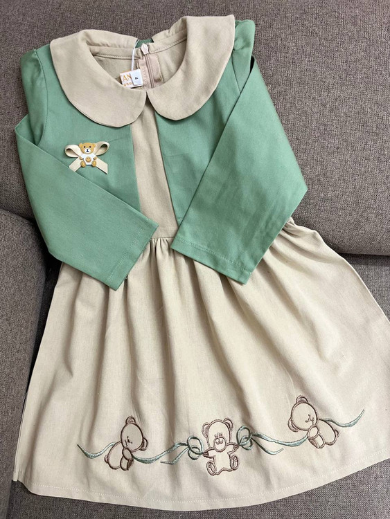 سایز ۳ سال : قد سارافون ۵۵ پهنا ۲۹ قد کت ۲۴ پهنا ۳۰ قد آستین ۳۳