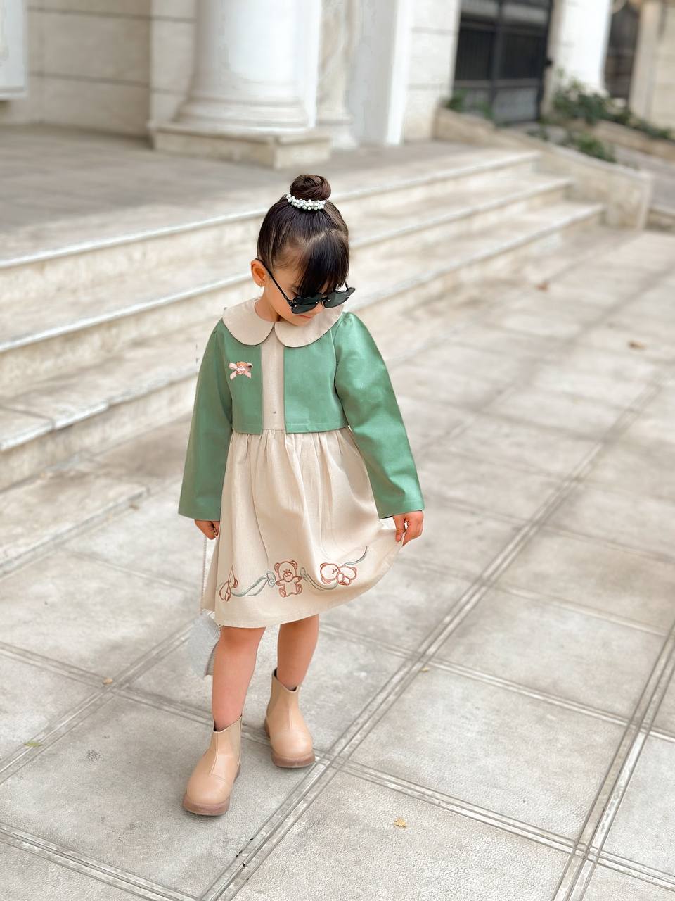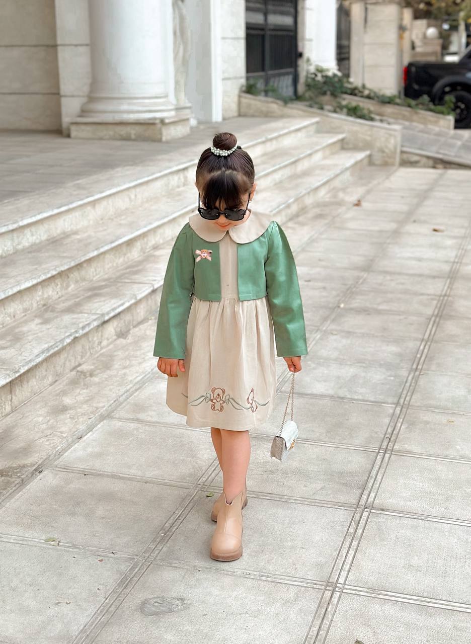 سایز ۴ سال : قد سارافون ۵۹ پهنا ۳۰ قد کت ۲۵ پهنا ۳۲ قد آستین ۳۶