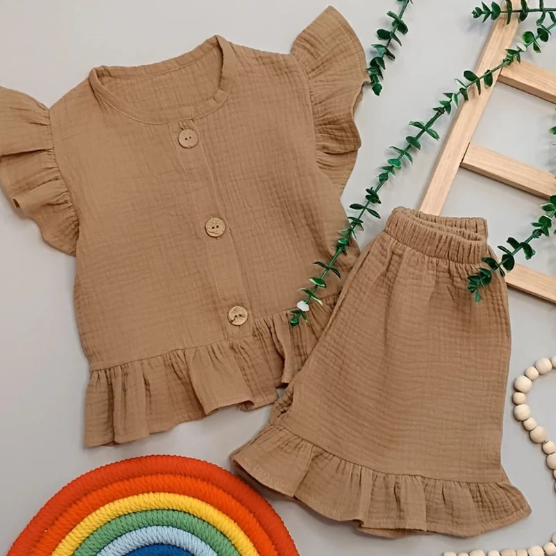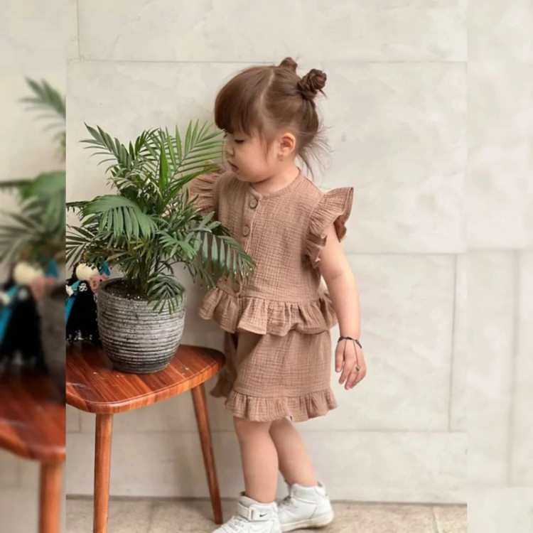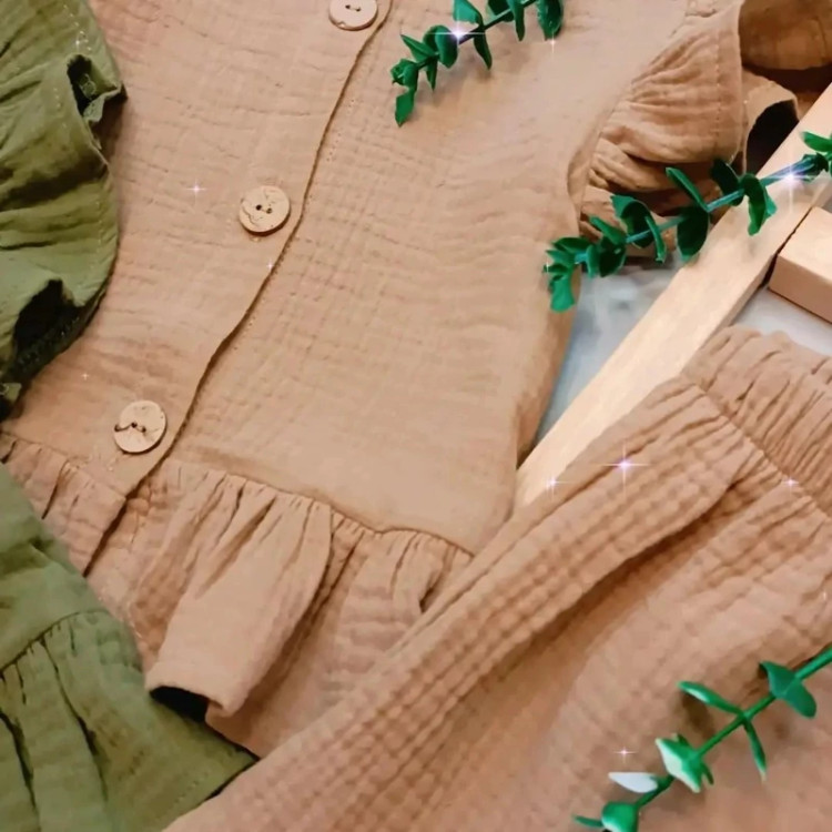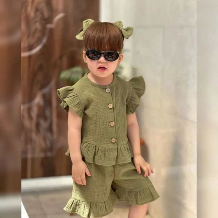 ست کراپ و شلوارک دخترانه جنس موسلین درجه 1