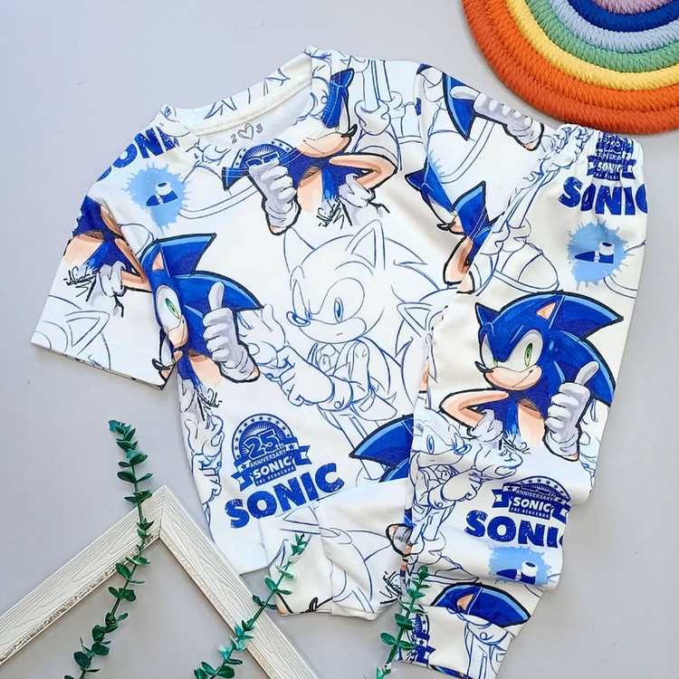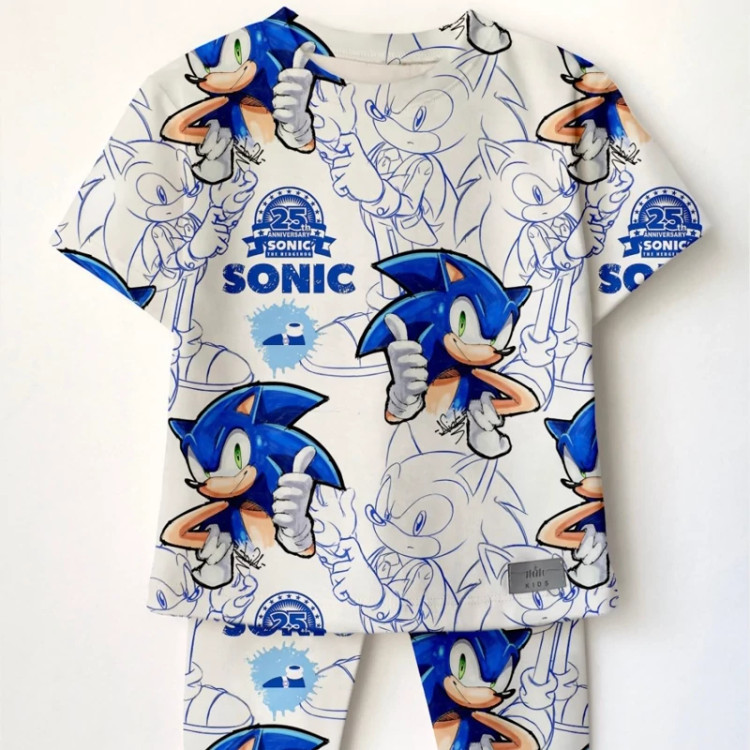 ست راحتی تیشرت و شلوارک پسرانه سونیک جنس نخ پنبه درجه یک