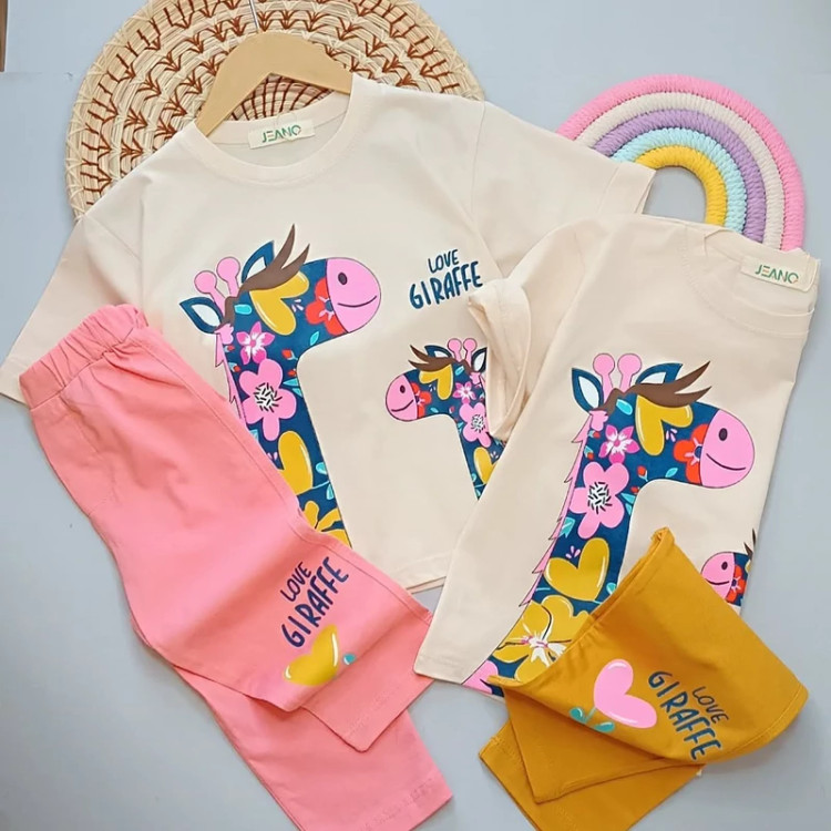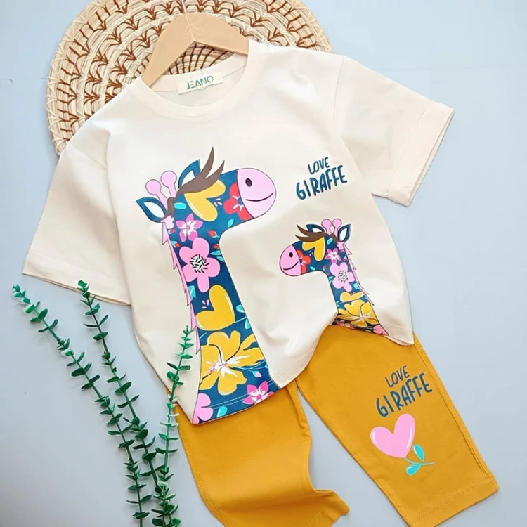 🤩 تیشرت و شلوارک جذااب زرافه 🤩 با جنس نخ پنبه و چاپ زول 🤌 کیفیتم که دیگه نگم براتون