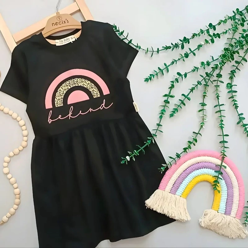 پیراهن رنگین کمان دخترانه مشکی